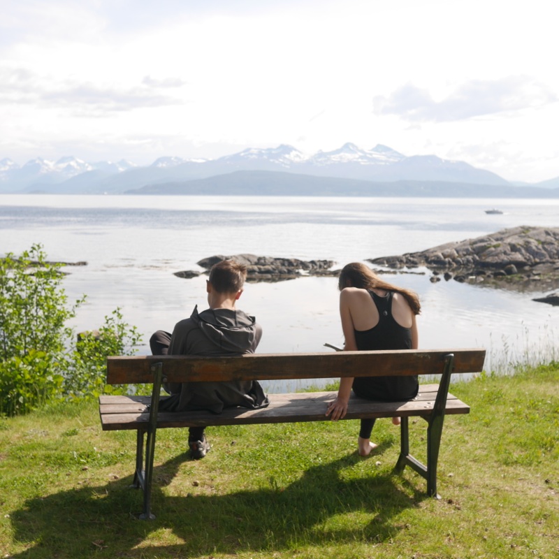 Nous devons prendre le bateau à 22h15 à Molde, alors en attendant, on ne lésine pas sur les pauses ! Nous nous arrêtons dans l'après-midi sur une plage où beaucoup se baignent. La tentation est forte. Mais, n'ayant pas de maillot de bain ni de douches à proximité, il a fallu renoncer à faire trempette. Nous mangeons le repas du soir au même endroit, puis nous reprenons la direction du port alors qu'il commence à pleuvoir. Oui, le temps norvégien est assez lunatique.